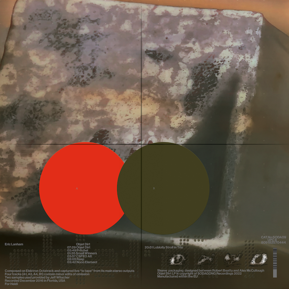 Over the past fifteen years, Florida-based multi-instrumentalist Eric Lanham has quietly generated a diverse and remarkable body of work both as a solo artist and in group settings. From the disorienting drone/collage ecstasies of Caboladies, his trio with Christopher Bush and Ben Zoeller, to wildly divergent solo flights under both his own name and as Carl Calm, Lanham’s carefully meted out recordings display the talents of a chameleonic composer who is as capable a sound designer as he is unconcerned with trend in experimental electronic music or notions of prolificness. “Objet Dirt” arrives ten years after “The Sincere Interruption,” his excellent longplayer for the now defunct Spectrum Spools imprint. Captured live, these compositions are brimming with kinetic, elastic, off-grid rhythms, an articulate and enigmatic language that restlessly darts around the stereo field. Of the collection, Lanham says "I haven’t made a single piece of music that sounds like this since and it is hard to imagine doing so again.” If this is the case, the 20+ minute closer is a formidable final document. At once chaotic and tightly controlled, it is a torrent of coiling low-end, submerged and stretched rhythms, and seething high-end filigree that is as indebted to the hungry ghosts of free improvisation as it is anything resembling techno.